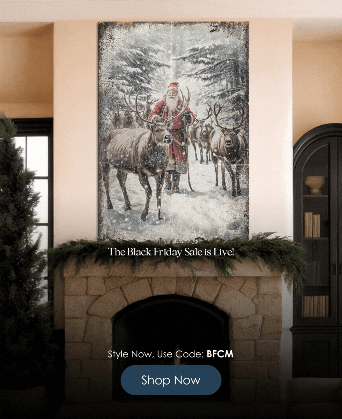 Vintage Woodland Santa Christmas Wall Art