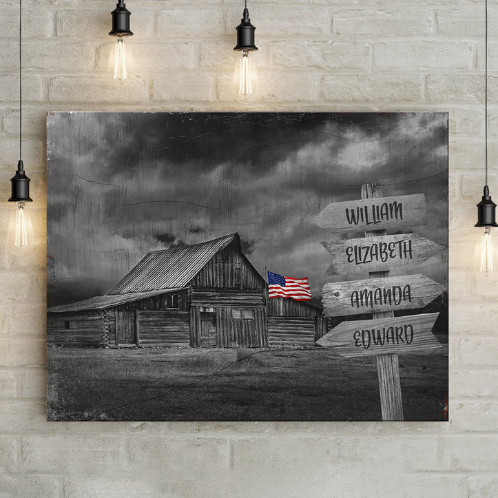 Looking to add a touch of patriotism to your barn? Look no further than our American Family Barn Name sign! This canvas wall art is the perfect way to show your love of country and can be customized with your family name to make it truly unique.