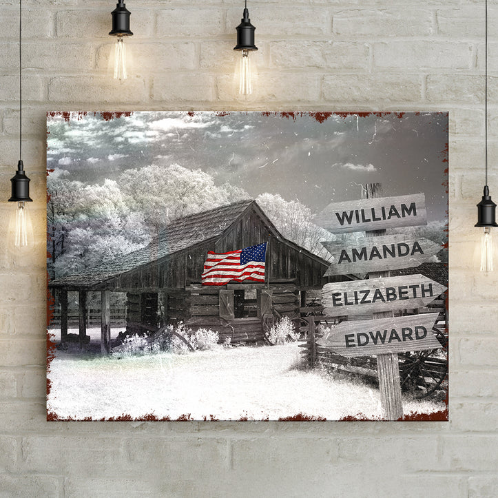 This canvas print is of the highest quality and will add a touch of style to any barn. Whether you're looking for a new decoration for your barn or searching for the perfect gift for the horse lover in your life, this American Family Barn Name wall art is sure to please. Customize it now and show your pride in being an American today!