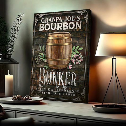 Elevate your space with the timeless allure of the Bourbon Distillery Sign. This exquisite customizable canvas piece captures the essence of vintage bourbon craftsmanship and brings it to life within your home or establishment.