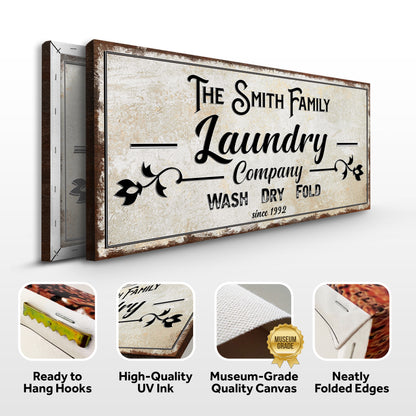 This Family Laundry Company sign is a must-have for your laundry business’s branding! You can customize this Family Laundry Company canvas print with your family name to make it more personalized and add on the services you provide at your laundry service shop.