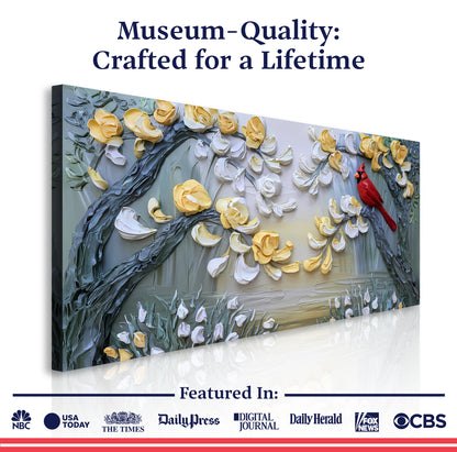 Golden Petals and Scarlet Wings Impasto Wall Art