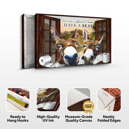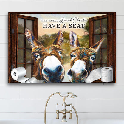 A Have a Seat Sweet Cheeks Bathroom sign is a creative and humorous way to add some style to your bathroom. This Have a Seat Sweet Cheeks Bathroom wall art is sure to get a chuckle out of your guests, and it will also help to keep your bathroom clean and organized. The Have a Seat Sweet Cheeks Bathroom canvas print is made of high-quality materials, and it comes with all the necessary hardware for easy installation. With its stylish design and easy installation, the Have a Seat Sweet Cheeks Bathroom canvas wall art is a great way to add some personality to your bathroom.