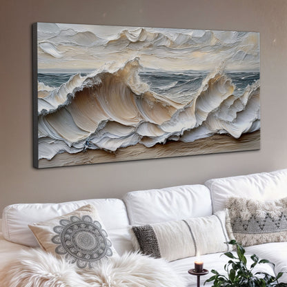 Our shore gently lapping our beach gives us peace. It hangs over our bed. Calming, Serene, magically relatable and personal to us.