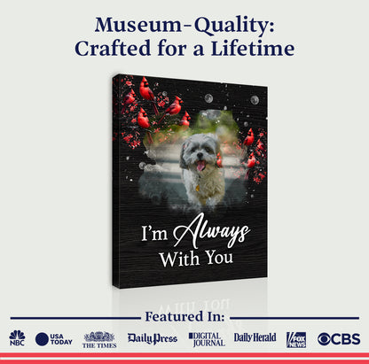 Let the memory of your beloved family member live on with this custom dog memorial pet loss frame portrait. Take comfort in the elegant wood patterns that will complement any photo canvas for any home décor style. Hang this passing gift in your pet's favorite room as a fitting tribute to the happy memories that you once shared.