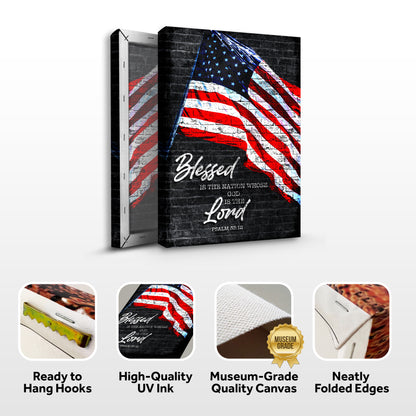 Take your devotion to the Lord and your country to a whole new level by grabbing our Psalm 33:12 Blessed is the Nation canvas wall art. This Psalm 33:12 Blessed is the Nation wall art will brighten up your living space and be the talk of your neighbors and friends. Thanks to its bold colors, exciting design, and high-quality materials.