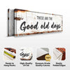 The These Are The Good Old Days wall art is made of a thick premium canvas, and UV-resistant ink is used to print the graphics. This wall art is ideal for creating a cozy atmosphere in your living area. With this These Are The Good Old Days sign, your home will never go out of style!