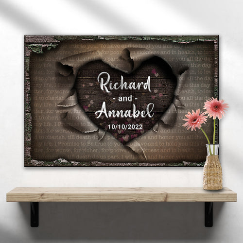 If you're looking for a truly special way to express your love and commitment to each other on your wedding day, this custom Unwrapped Heart Wedding Vows Sign is perfect.
