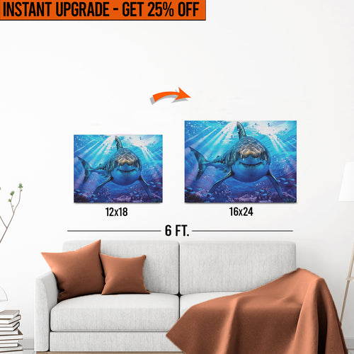Upgrade Your 12x18 Inches 'Underwater White Shark' Canvas to 16x24 Inches