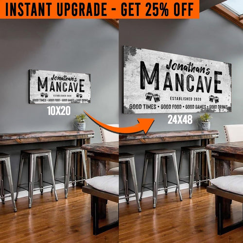 • This Upgrade Your 'Good Times Man Cave (Style 2) Canvas To 24x48 Inches sign is custom-made just for you. Get it with your family name, or change the other text to something that suits you - so YOUR home will tell YOUR family story.