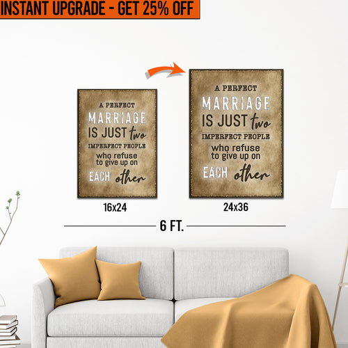 • This Upgrade Your 'A Perfect Marriage' To 36x24 Inches sign is custom-made just for you. Get it with your family name, or change the other text to something that suits you - so YOUR home will tell YOUR family story.