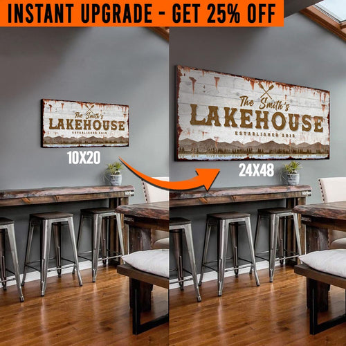 • This Upgrade Your 'Lake House' (Style 2) Canvas To 24x48 Inches sign is custom-made just for you. Get it with your family name, or change the other text to something that suits you - so YOUR home will tell YOUR family story.