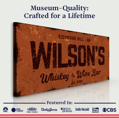 Introducing our newest custom whiskey and wine bar sign. This premium-quality canvas sign is perfect for adding extra flair to your home bar or local pub. Whether you prefer a rustic or modern look, you can customize your whiskey and wine bar wall art with your text, image, colors, and design choices.